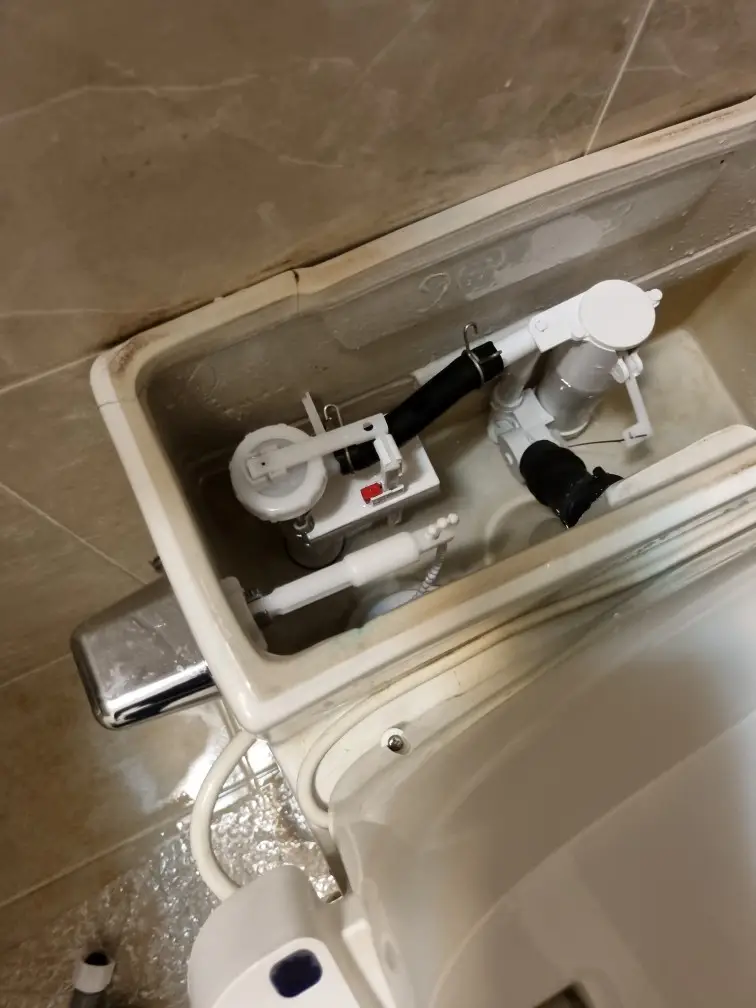 현장에 도착해서 변기 탱크 뚜껑을 열어보니 역시 물이 계속 흘러내리고 있었습니다. 급수 밸브와 플러시 밸브를 확인한 결과 여러 부품이 노후화되어 제 기능을 못 하는 상태였습니다. 부분 수리보다는 주요 부품을 전체 교체하는 것이 좋겠다고 판단했습니다.